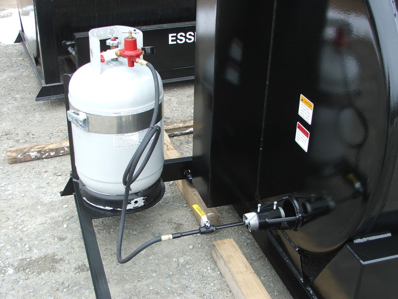 "Hot Box" heated by 400,000 BTU torch, with 50/100-lb. propane tank holder with locking strap, regulator, and pressure gauge. 40-minute heating time!