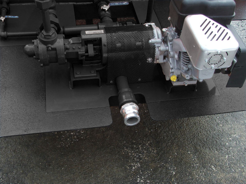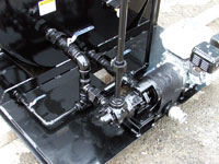 20 GPM Viking internal gear positive displacement pump with 112-inch ports, dual relief valves allow continuous circulation, 2-inch quick connect for tank fill