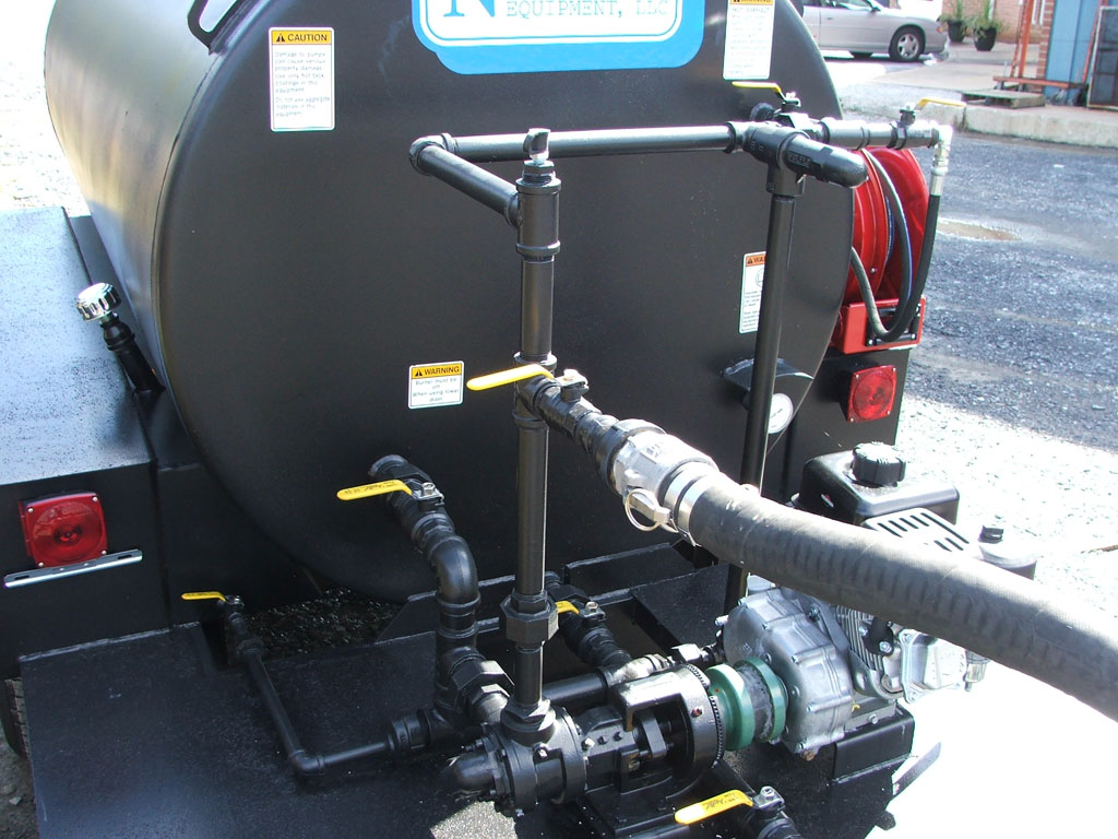20 GPM Viking internal gear positive displacement pump with 112-inch ports, dual relief valves allow continuous circulation, 2-inch quick connect for tank fill