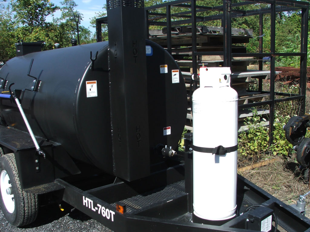 "Hot Box" heated by 400,000 BTU torch, with 50/100-lb. propane tank holder with locking strap, regulator, and pressure gauge. 40-minute heating time!